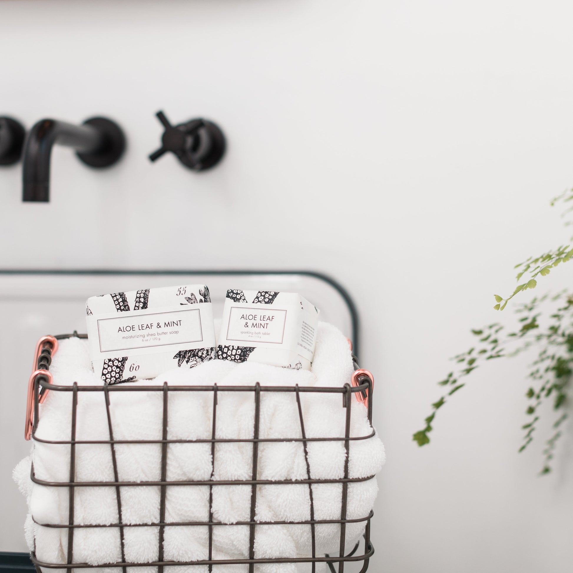 Aloe Leaf & Mint blend is our most invigorating, zesty, and "clean" scent. We blend fresh aloe leaf with cooling mint and add a touch of black pepper, creating a perfect morning pick-me-up for your self-care routine. This vegan soap bar is perfect for refreshing in the heat for a lingering, clean feeling. Its natural ingredients are gentle and nourishing to your skin, giving it a healthy boost of hydration. Enjoy a fresh shower time experience!