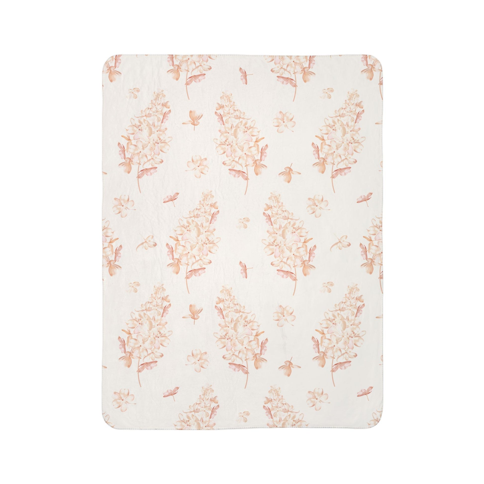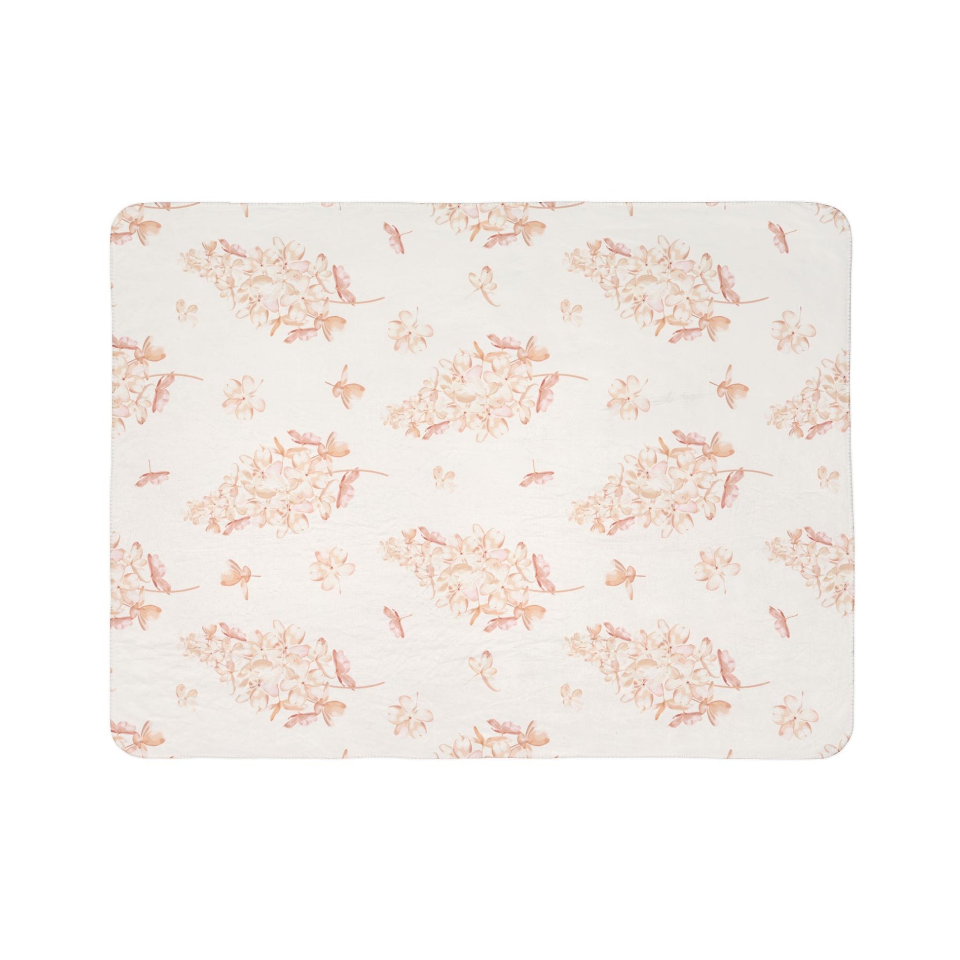 Delicate and dreamy, the Cape Cottage Floral Blanket brings a gentle touch of coastal romance to any space. Its white base is adorned with soft pink botanical stems, creating a pattern that feels light, graceful, and full of quiet charm. Inspired by the cottage gardens of Cape Cod, this design balances whimsy and refinement; perfect for a serene master bedroom or a coastal nursery. The smooth printed front offers a soft, airy feel, while the tan fleece backing adds plush warmth and comfort. Effortlessly elegant, it embodies Everblue’s signature blend of coastal simplicity and luxury.