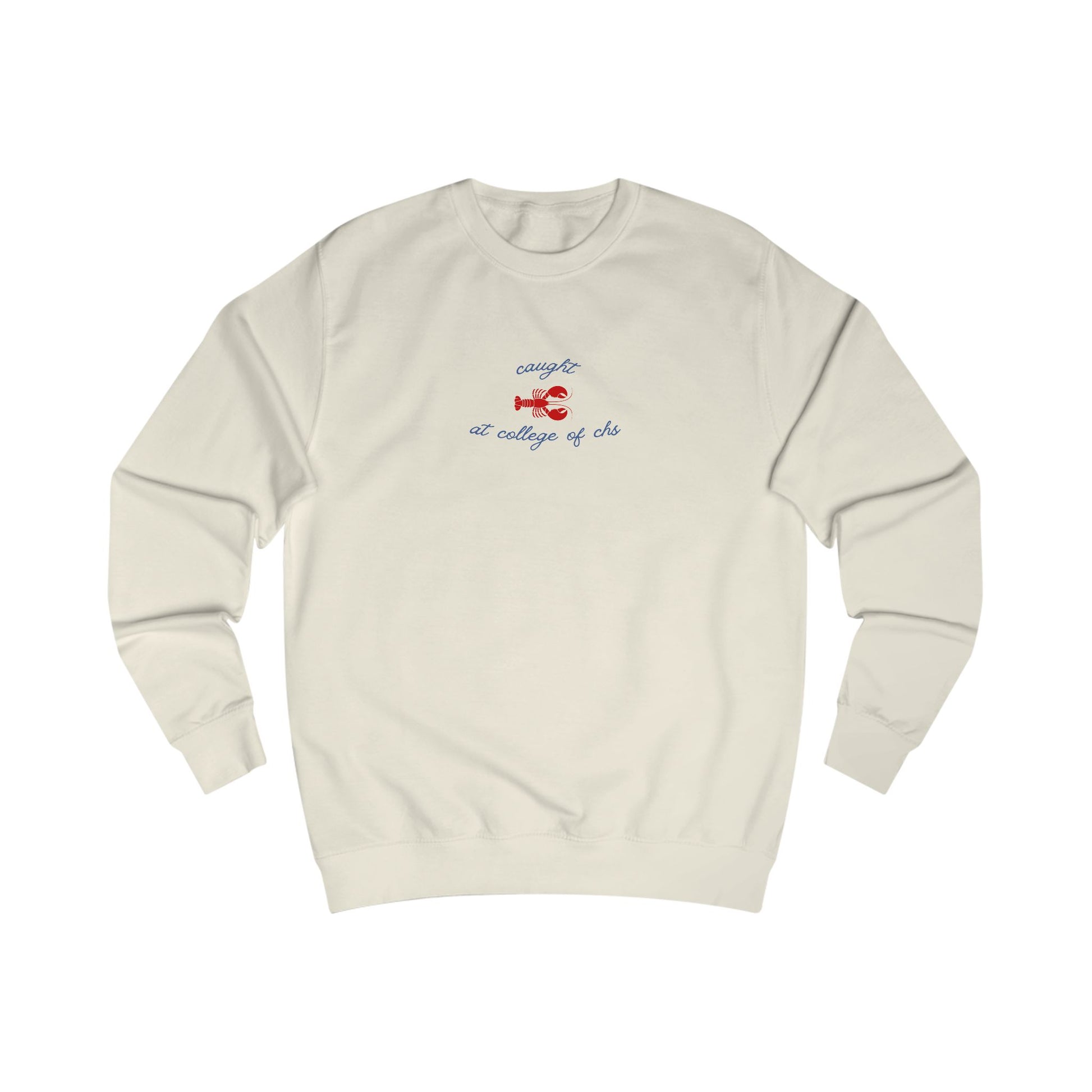 Rep Charleston with a coastal twist. Our Caught at College of Charleston crewneck pairs a crisp sweatshirt with navy collegiate lettering and a tiny red lobster graphic for a playful preppy nod to life by the sea.