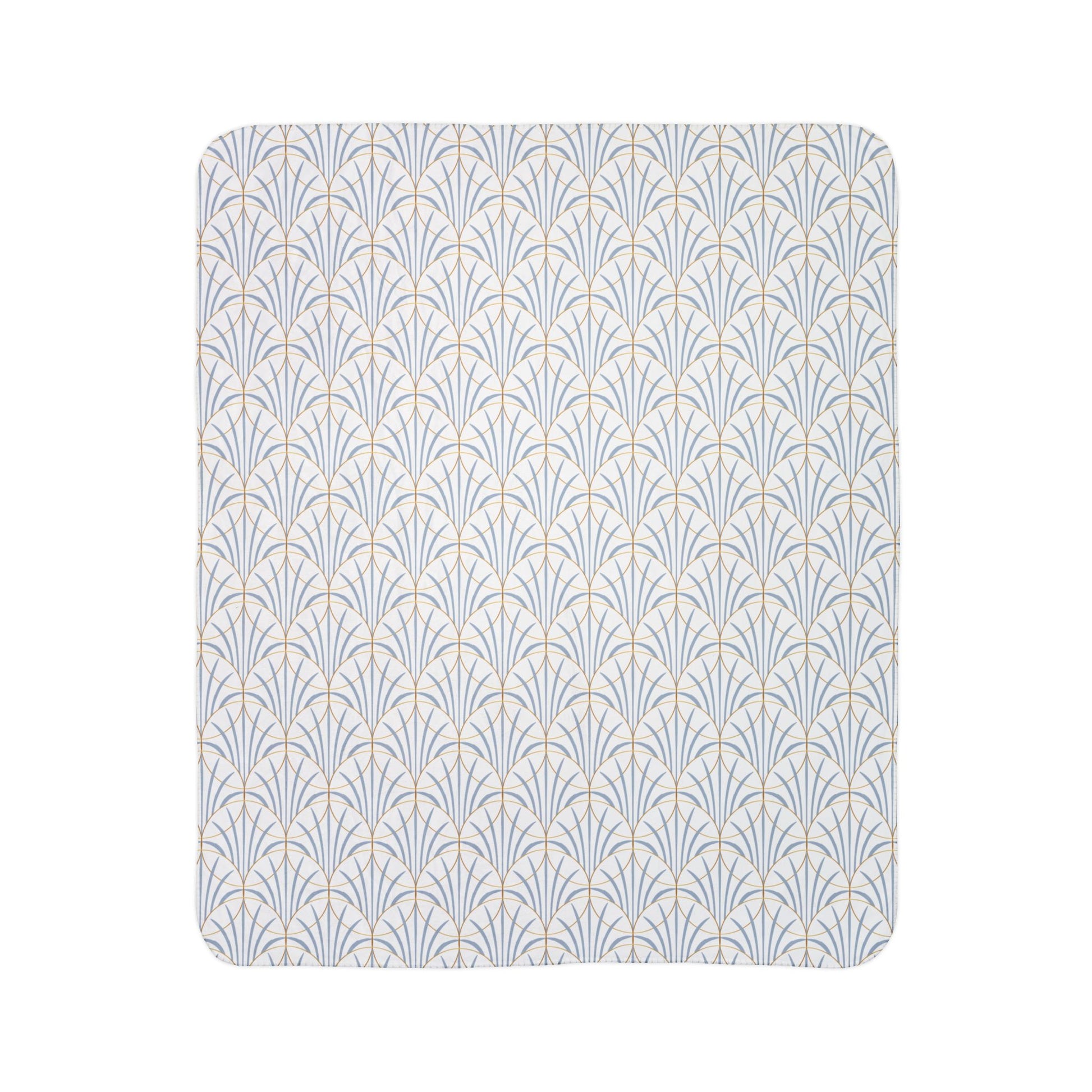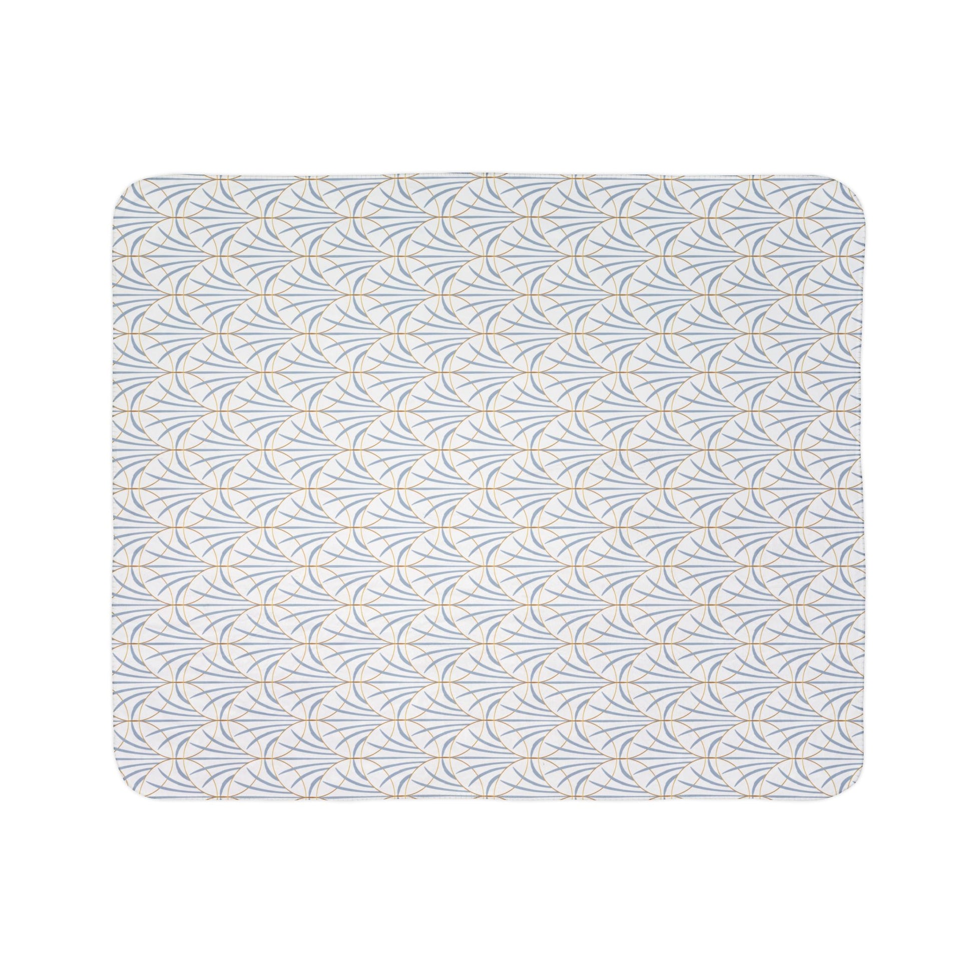The Coastal Slate Blanket brings classic coastal sophistication into everyday spaces. Its slate blue geometric design is accented with soft gold circles, creating a balanced pattern that feels iconic, elegant, and meticulously curated. The printed front is silky soft, paired with a plush tan fleece backing for warmth and comfort, offering the refined look of boutique coastal décor without the designer price. Perfect for layering on a sofa, chair, or bed, this throw transforms interiors with subtle luxury and enduring style.