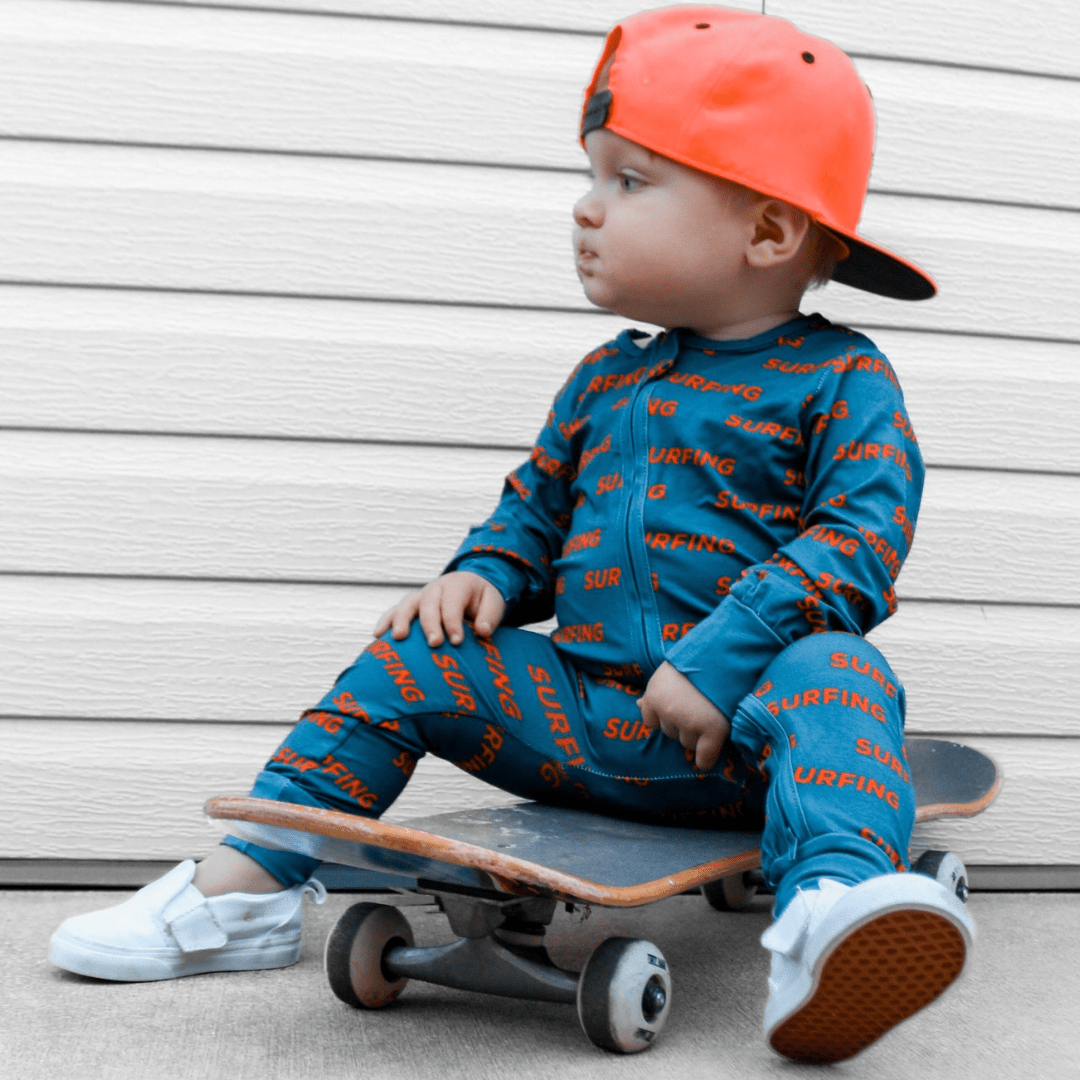 Our premium fabric blend of bamboo is a fan favorite, offering skin-soothing properties that can even help reduce the signs and symptoms of eczema. You're sure to be stoked over our LRT zipper onesies, that make diaper changes and bedtime a dream - literally.
