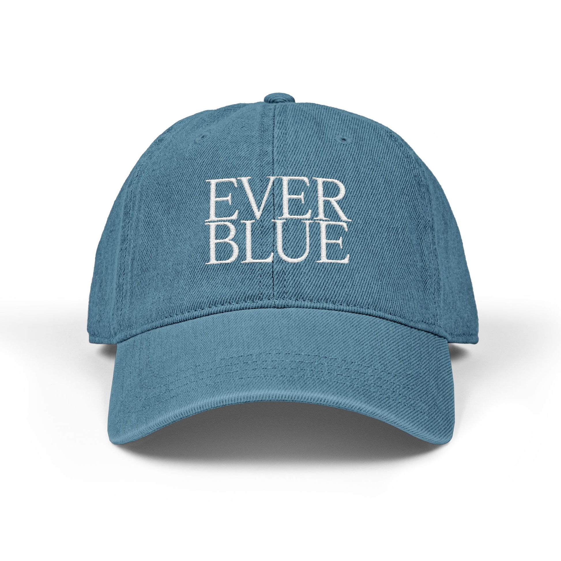 Understated, refined, and effortlessly chic. The “Ever / Blue” denim hat is designed for those who want to elevate any outfit without saying too much. Crisp white embroidery stands out against the soft denim, giving it a polished, high-fashion feel.