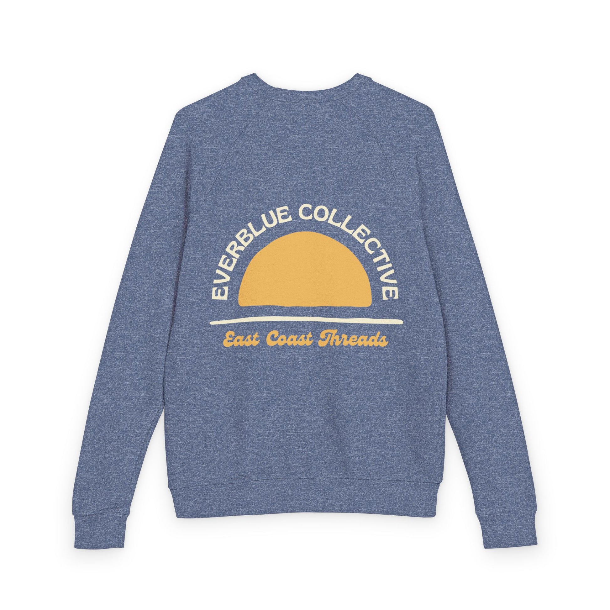 Vintage vibes meet modern comfort with the Everblue Collective Retro Surf Crew Neck. Featuring a retro sun graphic, a clean line, and “Everblue Collective, East Coast Threads” in classic surf-inspired font, the design sits subtly on the left chest and larger across the back for maximum impact.