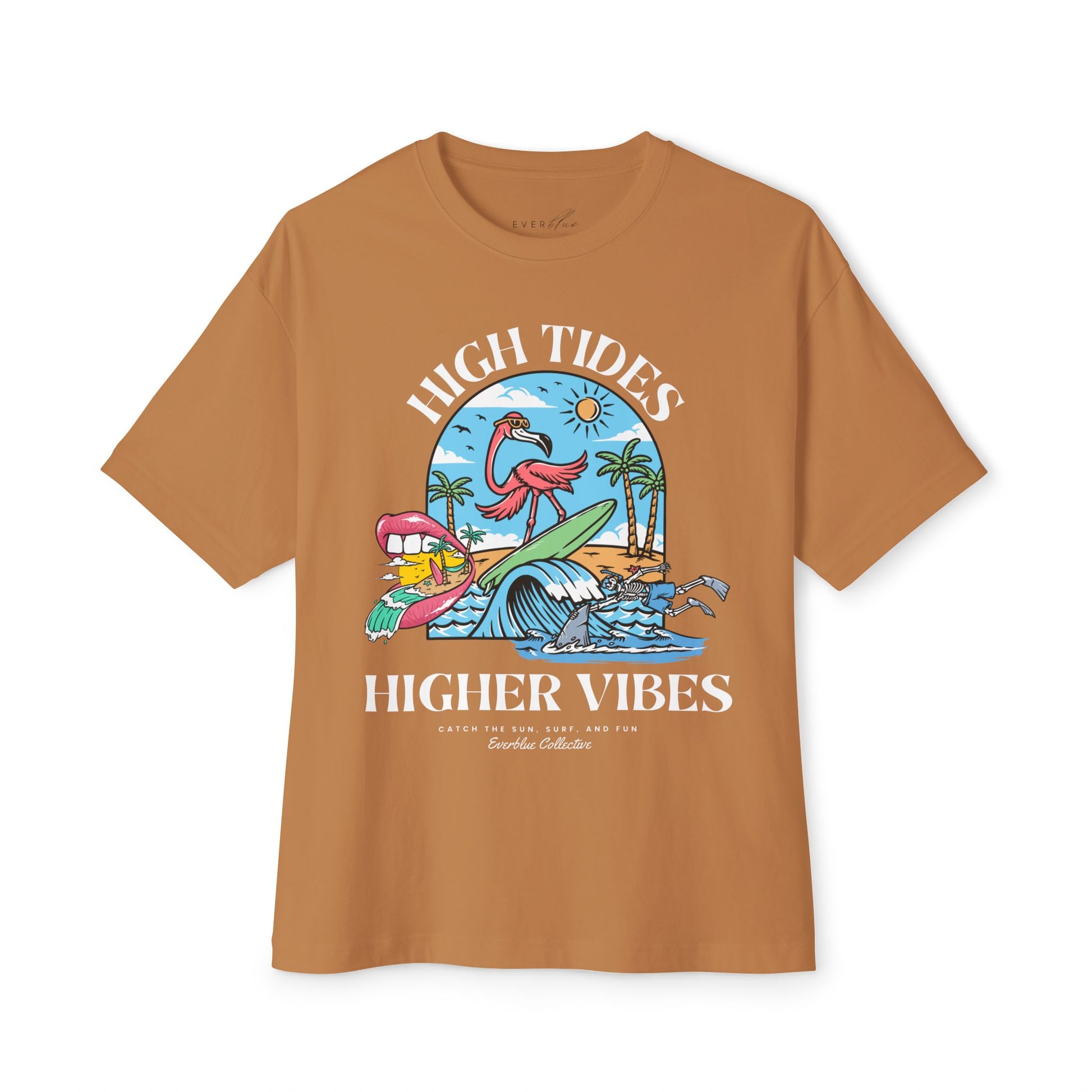 When a skeleton’s riding a shark and a flamingo is catching waves, you know the vibes are off the charts. Our High Tides, Higher Vibes tee brings the perfect storm of surf, sass, and a little mayhem — all wrapped in a laid-back, oversized fit that feels as good as it looks.