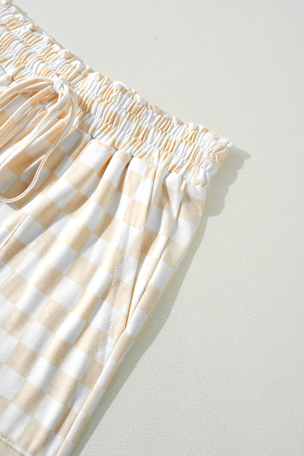 Chic, cozy, and a little elevated—this Plaid Lounge Set was made for laid-back luxury. The soft stretch fabric moves with you, while the checkered pattern keeps it stylish from morning coffee to late-night laughs. A knotted top and wide-leg pants complete the relaxed yet polished vibe.