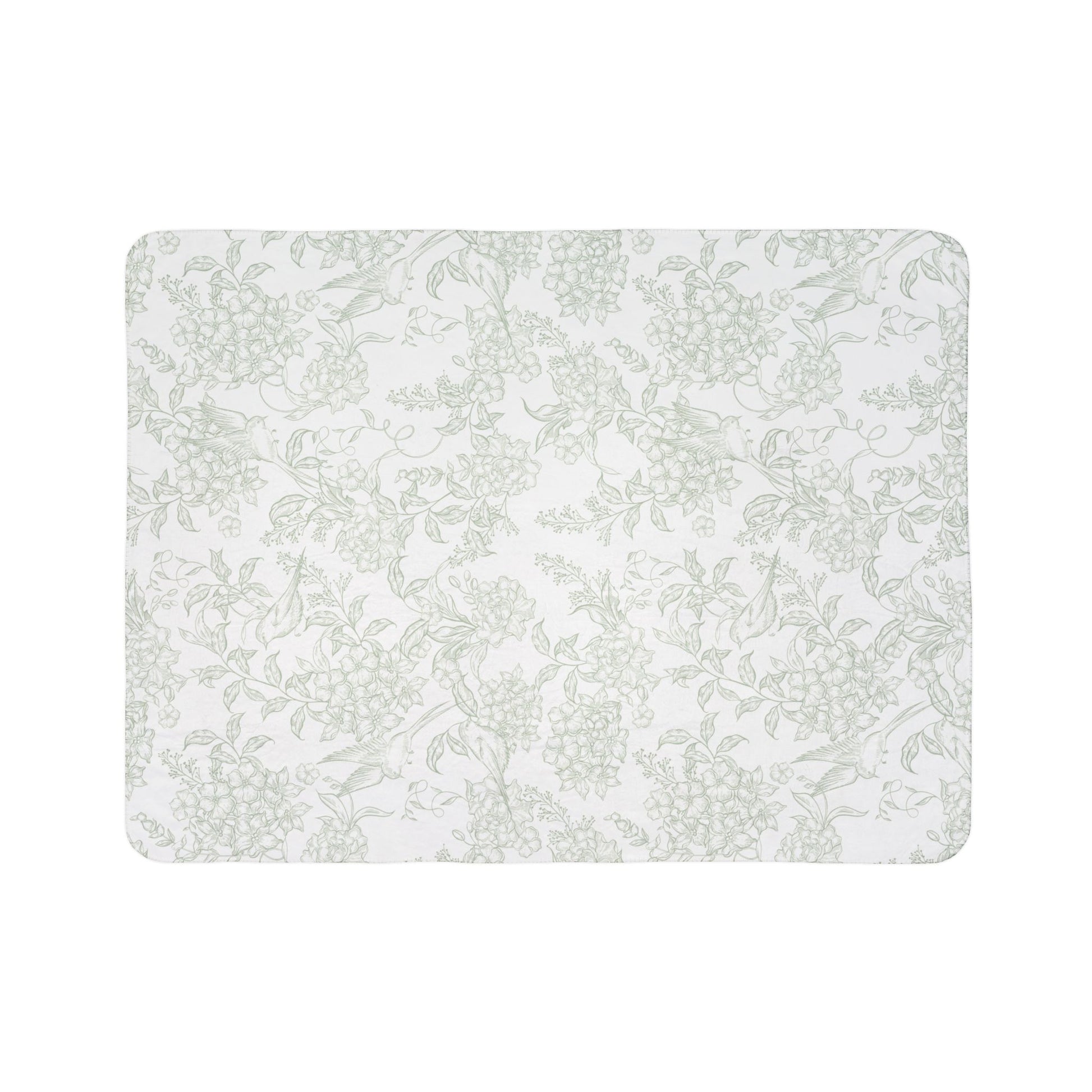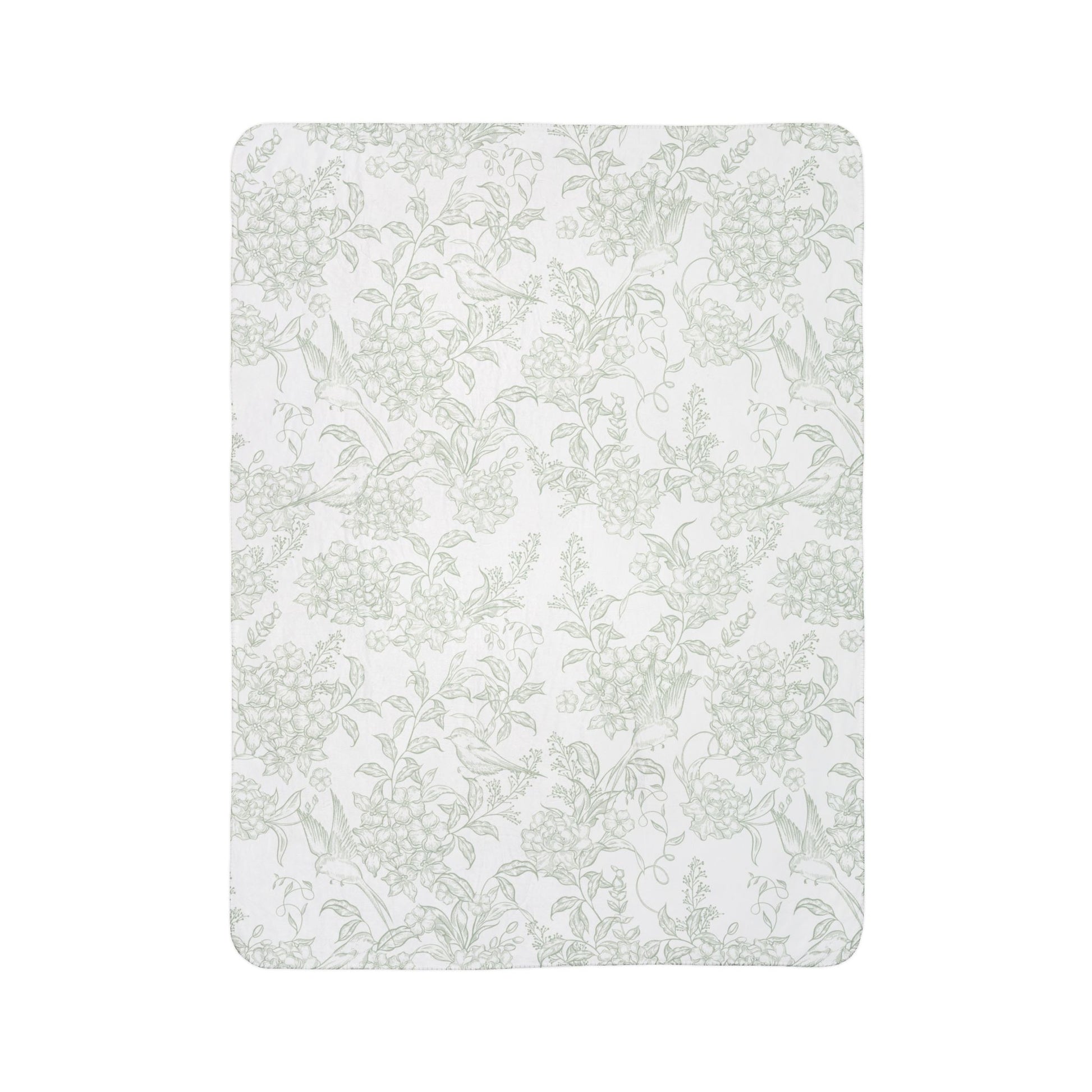 The Southern Canopy Blanket evokes the serene beauty of southern landscapes, where seafoam green vines and delicate birds drift across a crisp white background. Elegant and traditional, this design captures the lush, sun-dappled charm of Kiawah Island oak trees and the quiet magic of coastal southern gardens. The printed front is soft and tactile, while the plush tan fleece backing adds warmth and comfort. Perfect for layering on a sofa, chair, or bed, this throw brings refined southern charm and Everblue’s signature coastal sophistication into any space.