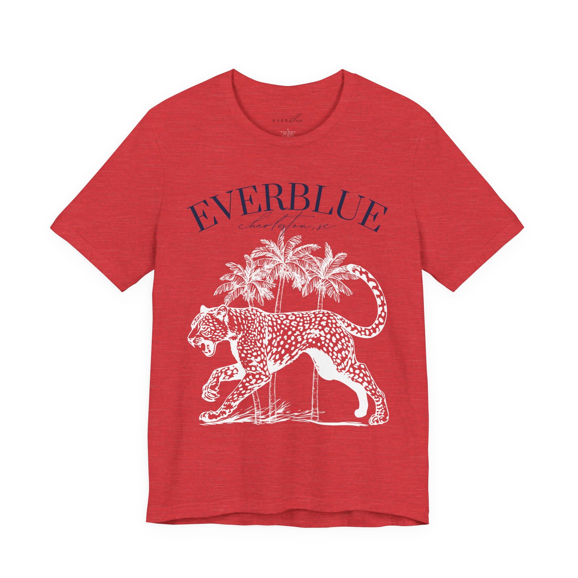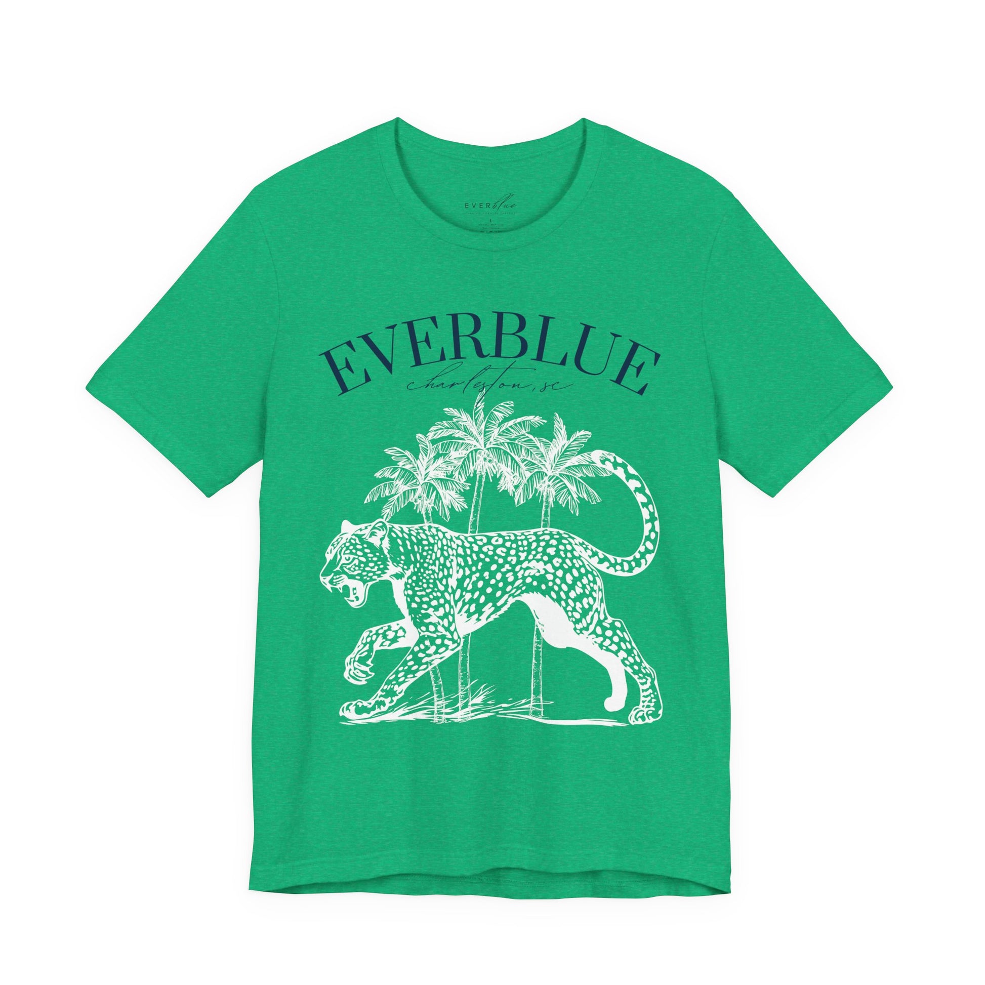 A vintage-inspired tee with just the right amount of edge. Featuring a cheetah silhouette framed by three palms, this Everblue original nods to Charleston’s coastal energy with a bold, boutique twist.