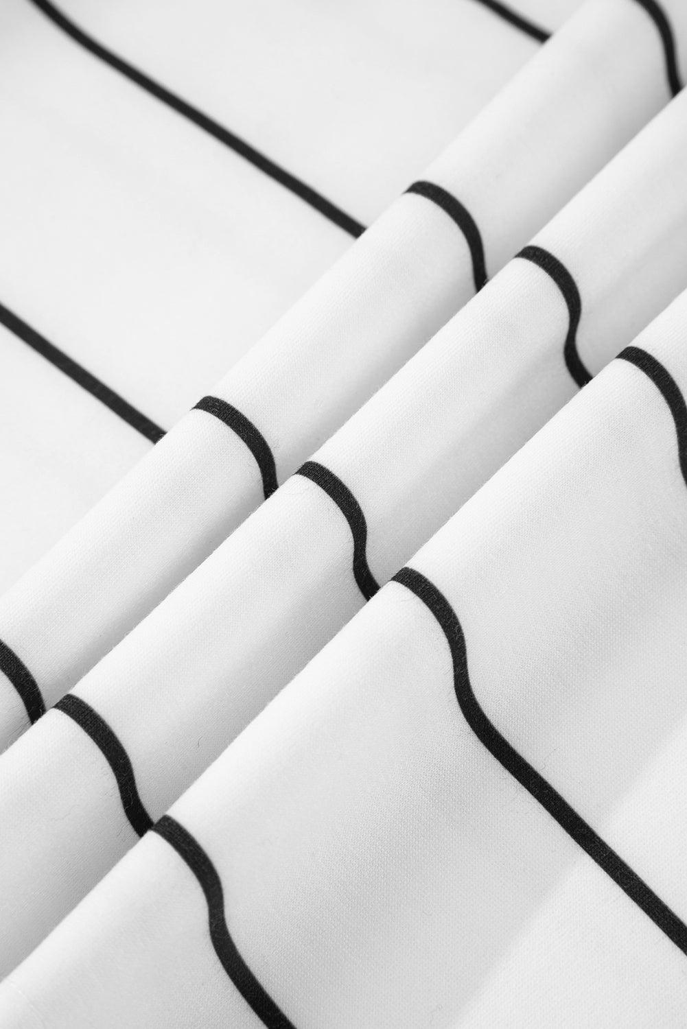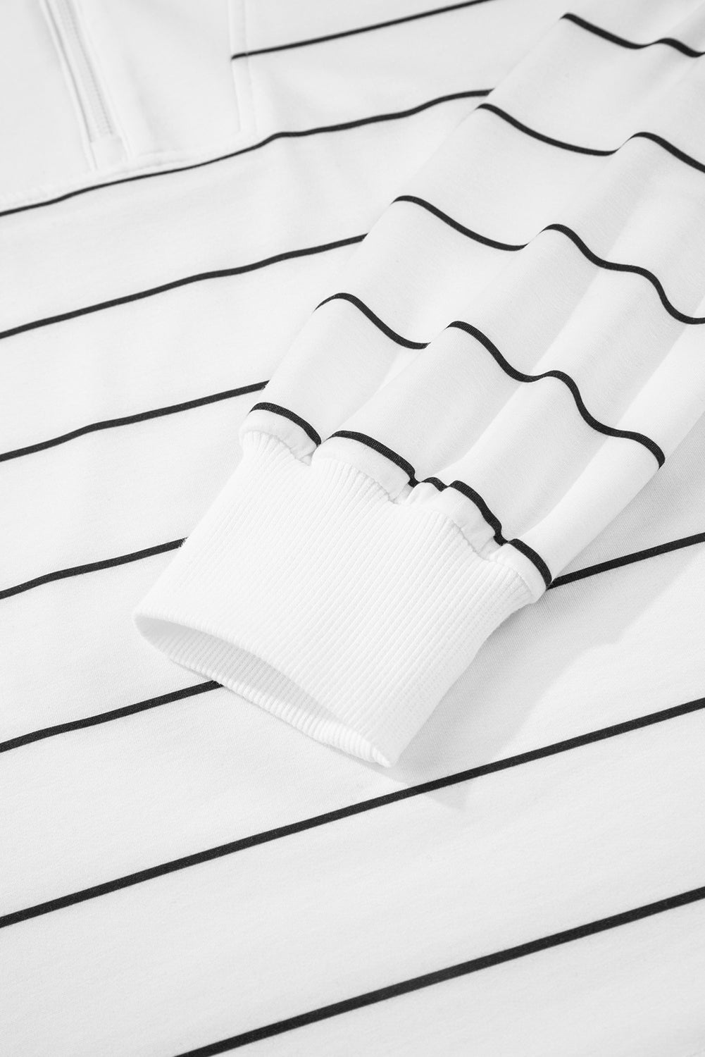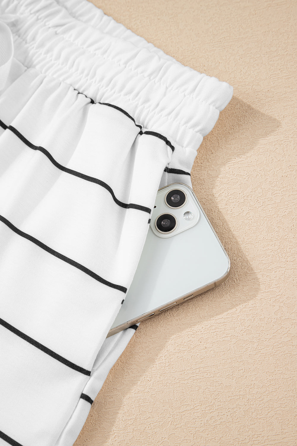 White Striped Pullover + Shorts Set 2pcs Outfit