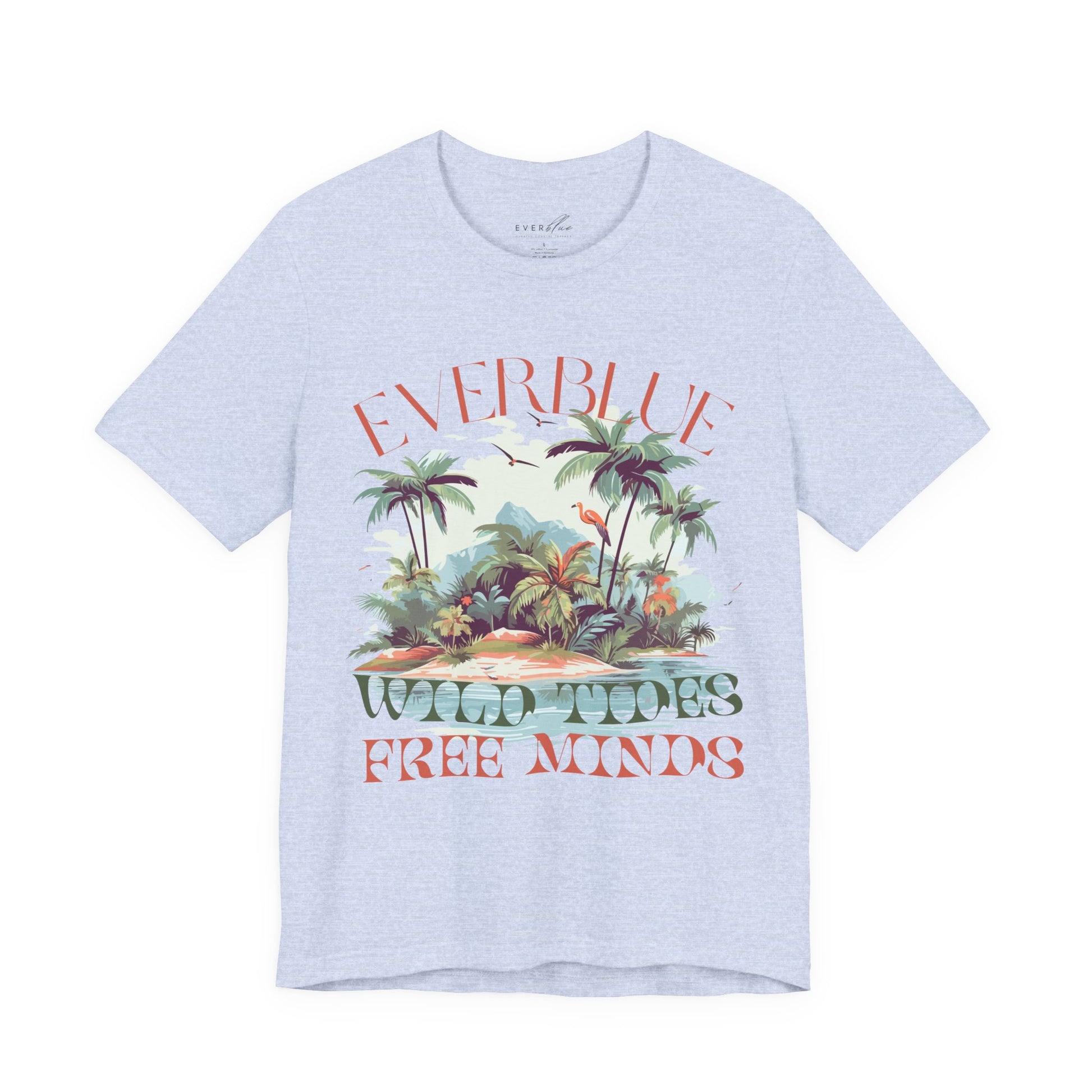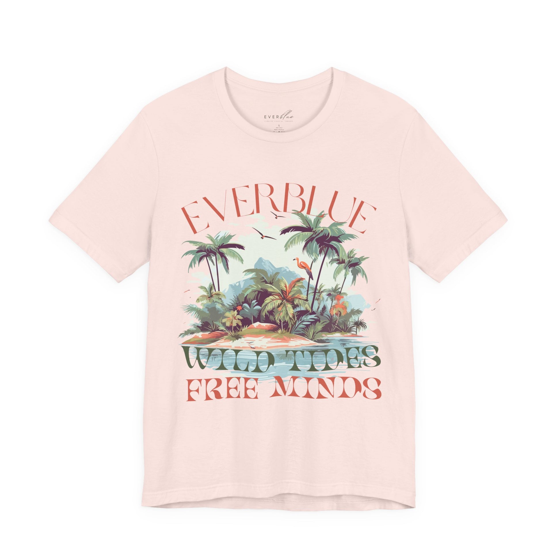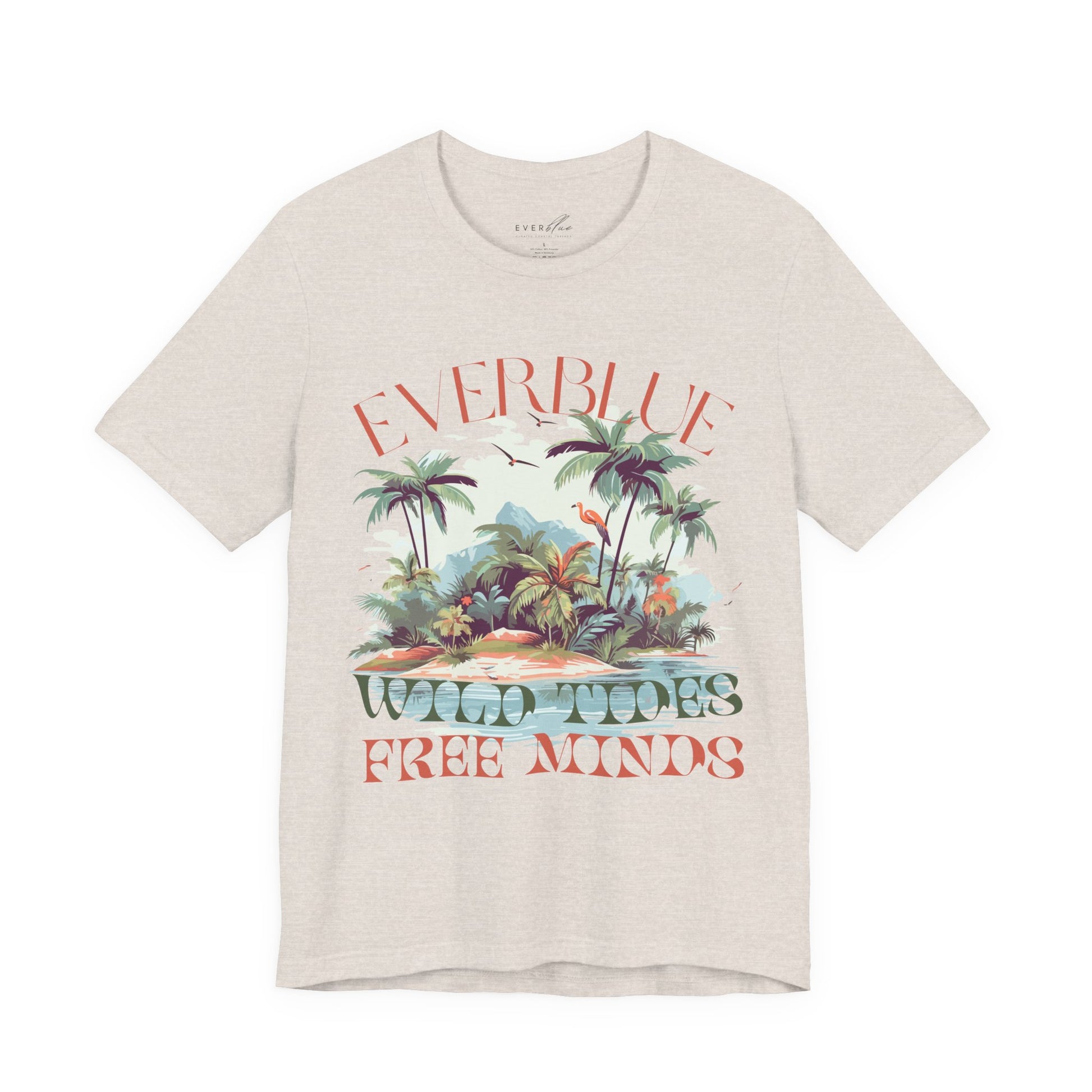 Drift into a softer state of mind with the Wild Tides, Free Minds tee — where island edge meets laid-back living. Inspired by the raw beauty of the Hawaiian coast and vintage surf culture, this oversized tee captures the carefree energy of EverBlue with a dreamy blend of flamingos, palms, and salty freedom.